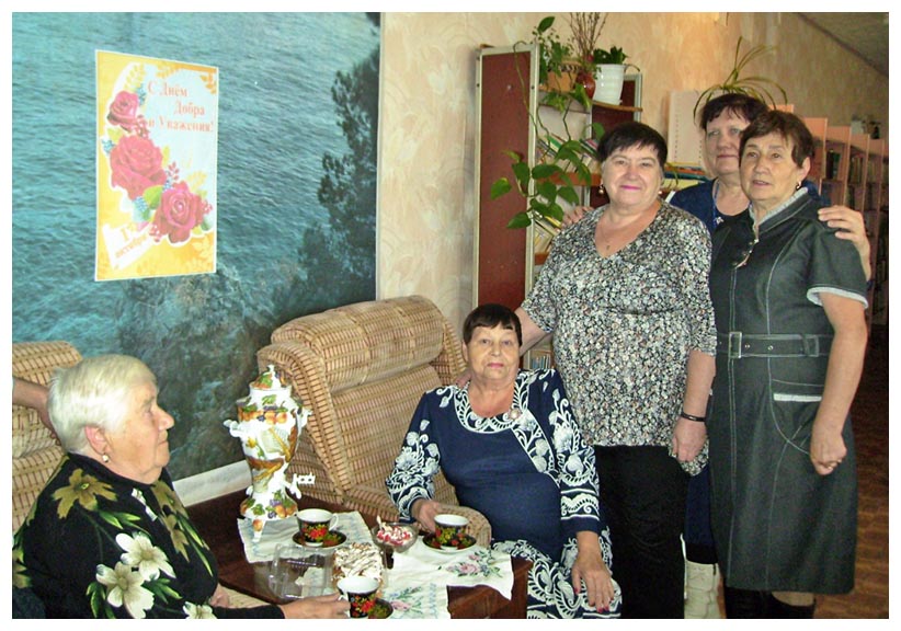 В этот день Красноорловская сельская библиотека пригласила читателей на тематический вечер «Передай добро по кругу». Люди в возрасте являются наиболее читающими, наиболее отзывчивыми и принимающими активное участие в библиотечной жизни. В дружеской обстановке за кружечкой чая читатели поделились секретами своей активности, мудрости. Вспомнили веселые истории из своей жизни, читали стихи и пели песни. Глядя на открытые лица, доброжелательные улыбки, хочется назвать этот праздник Днём взаимной чуткости, внимания, такта и добрых улыбок. |