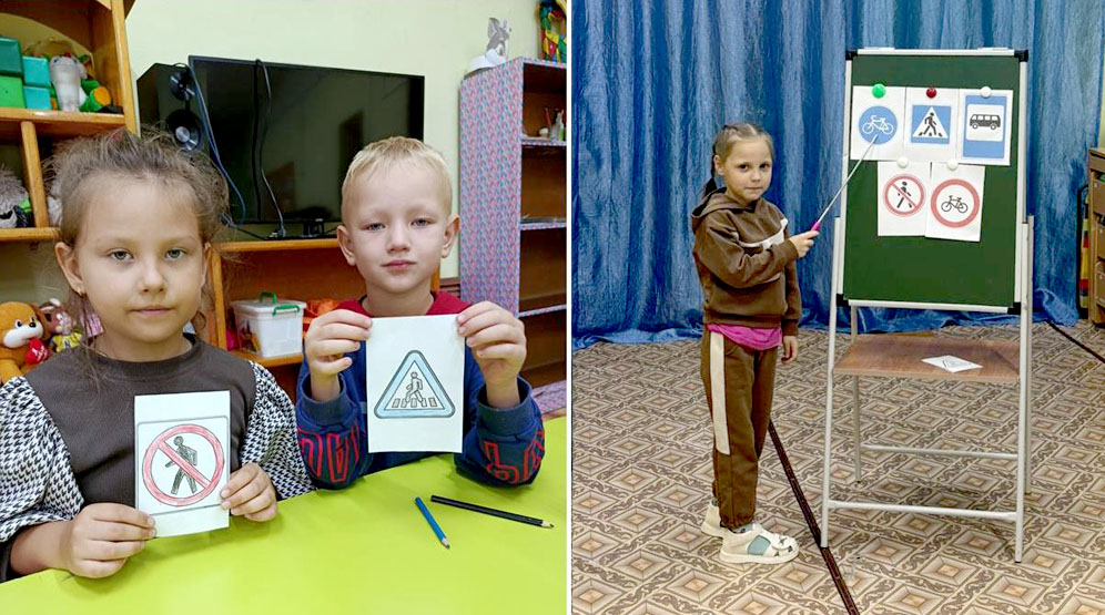 2 сентября заведующая библиотекой Юлия Викторовна Базылева посетила детский сад № 9 «Алёнка», где провела познавательную игру «Господин Дорожный знак». В игровой форме малыши познакомились с основными дорожными знаками («Пешеходный переход», «Движение пешеходов запрещено», «Место остановки автобуса», «Велосипедная дорожка», «Движение на велосипедах запрещено»), научившись различать их значение и внешний вид. Дети проявили активность, разгадывая загадки и раскрашивая значки своими руками.