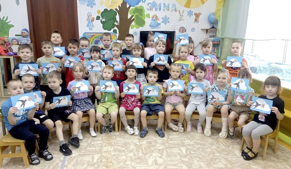 Затем ведущая рассказала воспитанникам об истории возникновения «Блокадной ласточки» - символе блокадного города. Она символизировала ожидание письма с хорошими новостями с фронта, а также веру в Победу.
