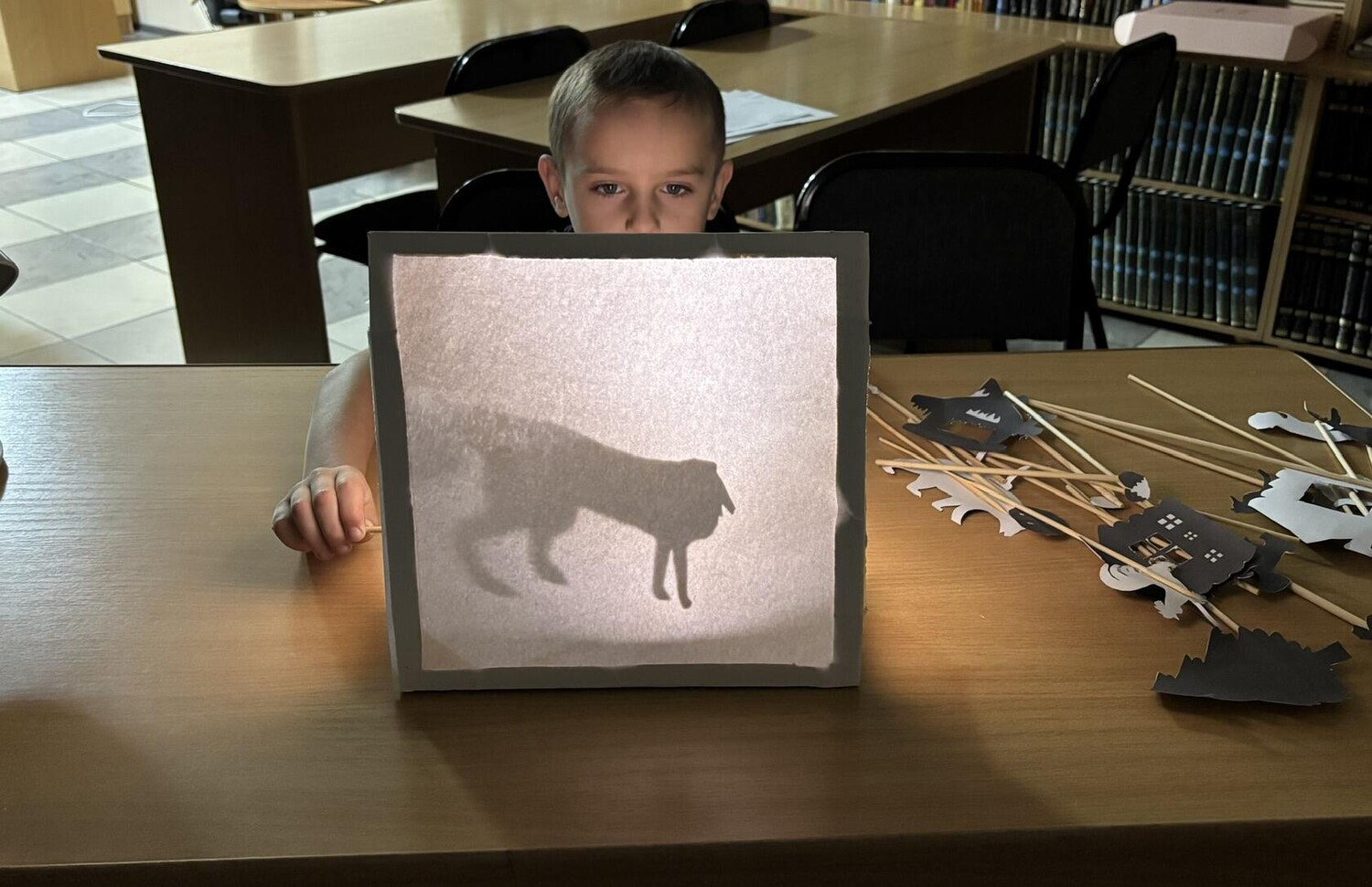 В начале встречи библиотекари пригласили участников отправиться в волшебное путешествие в мир теней. Мальчишки и девчонки окунулись в захватывающее приключение, наблюдая за знаменитыми героями русских народных сказок. Ведущие показали детям постановки по мотивам известных детских произведений – «Колобок», «Репка», «Курочка Ряба» и «Теремок».